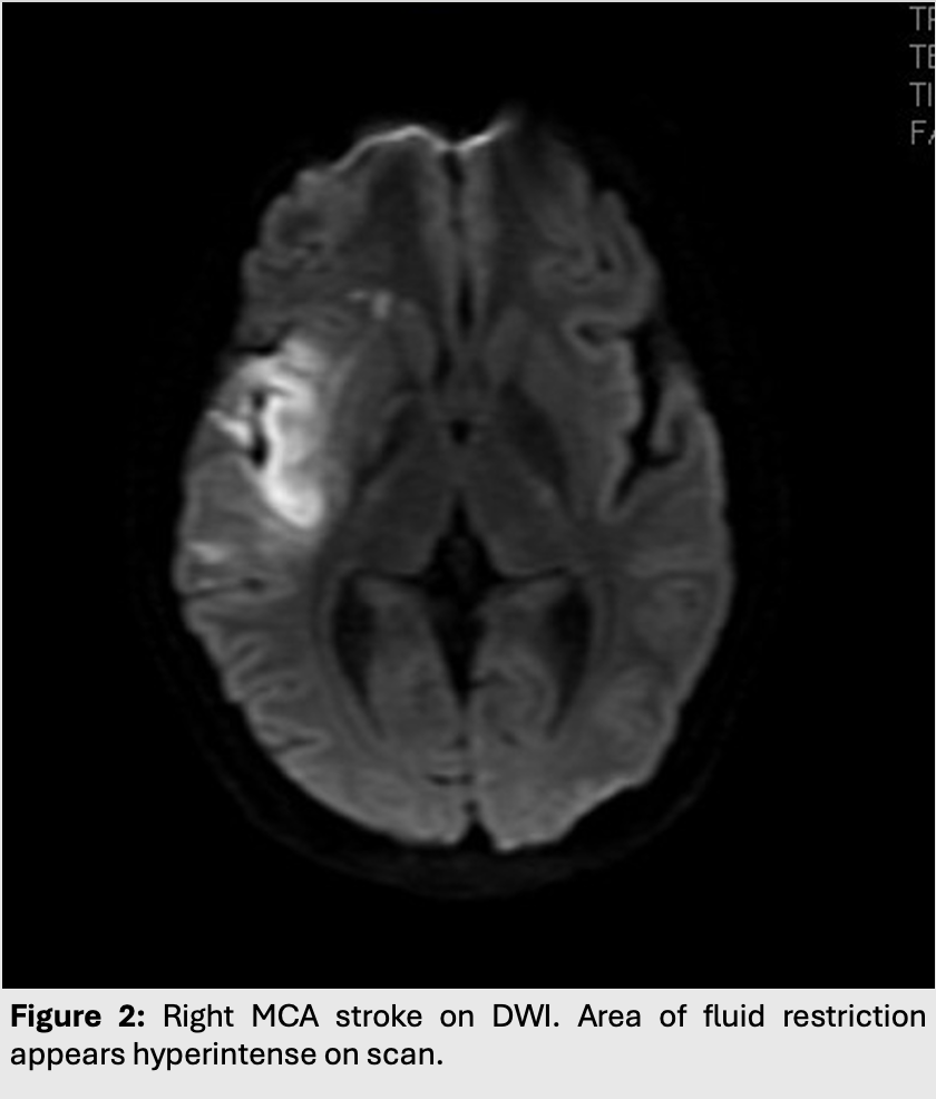 - However, it only takes between 10 to 60 minutes for and acute MCA infarct to be seen on DWI.